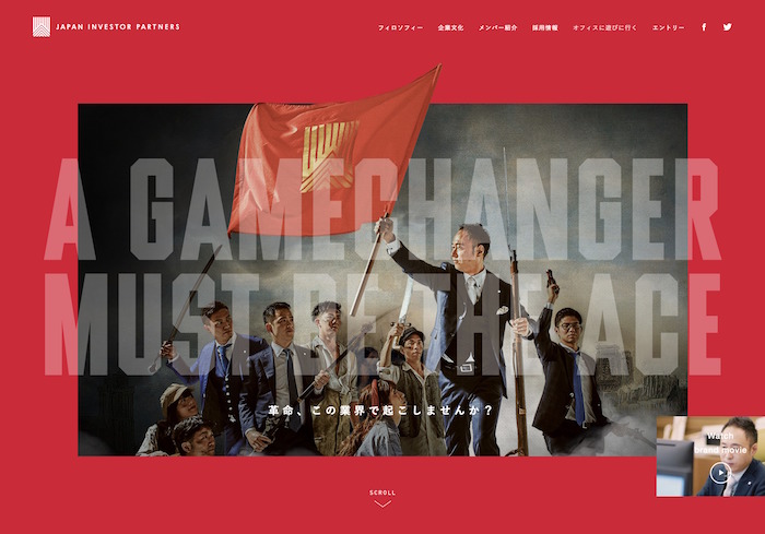 こちらもファーストビューは動画を採用しており、オフィスの様子が伺えます。