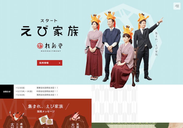 サイト内コンテンツの演出もえびを絡めているところに工夫を感じます。