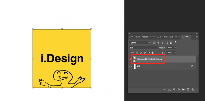 「idot.png」で普通サイズの画像、「,」で区切って「200%idot@2x.png」をつけることで、2つのサイズが一気に書き出せる仕組みとなっています。
