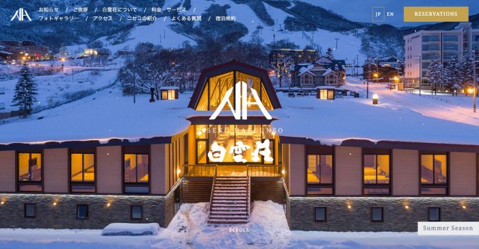 全体的白で統一されたホームページになっており、実際のまっしろなホテルのイメージできます。
