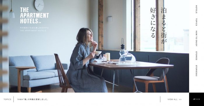 泊まるだけでなく、泊まった街を楽しむことをコンセプトにしているホテルのホームページ。